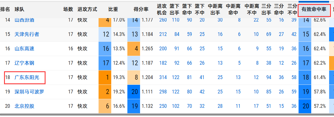 这番话一针见血指出了广东队的比赛特点和目前的最大短板,截至目前,广东队的快攻比重是19.3%,高居联赛第1,深圳、上海、山西、福建分列2-5名,场均快攻得分高达21.3分,比第二名的深圳还多出将近5分。而辽宁、吉林的快攻比重分别只有12.4%和9%,一个倒数第4,一个倒数第1,这两队不善快攻,防守也只是联赛中游水平,遇到广东队这种无脑推快的球队,他们很容易被带起来也推反击打快,一旦快攻节奏跟不上,很容易就崩盘。